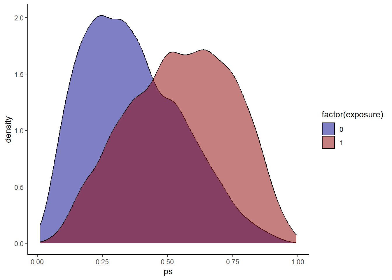 Check propensity score overlap in both exposure groups.