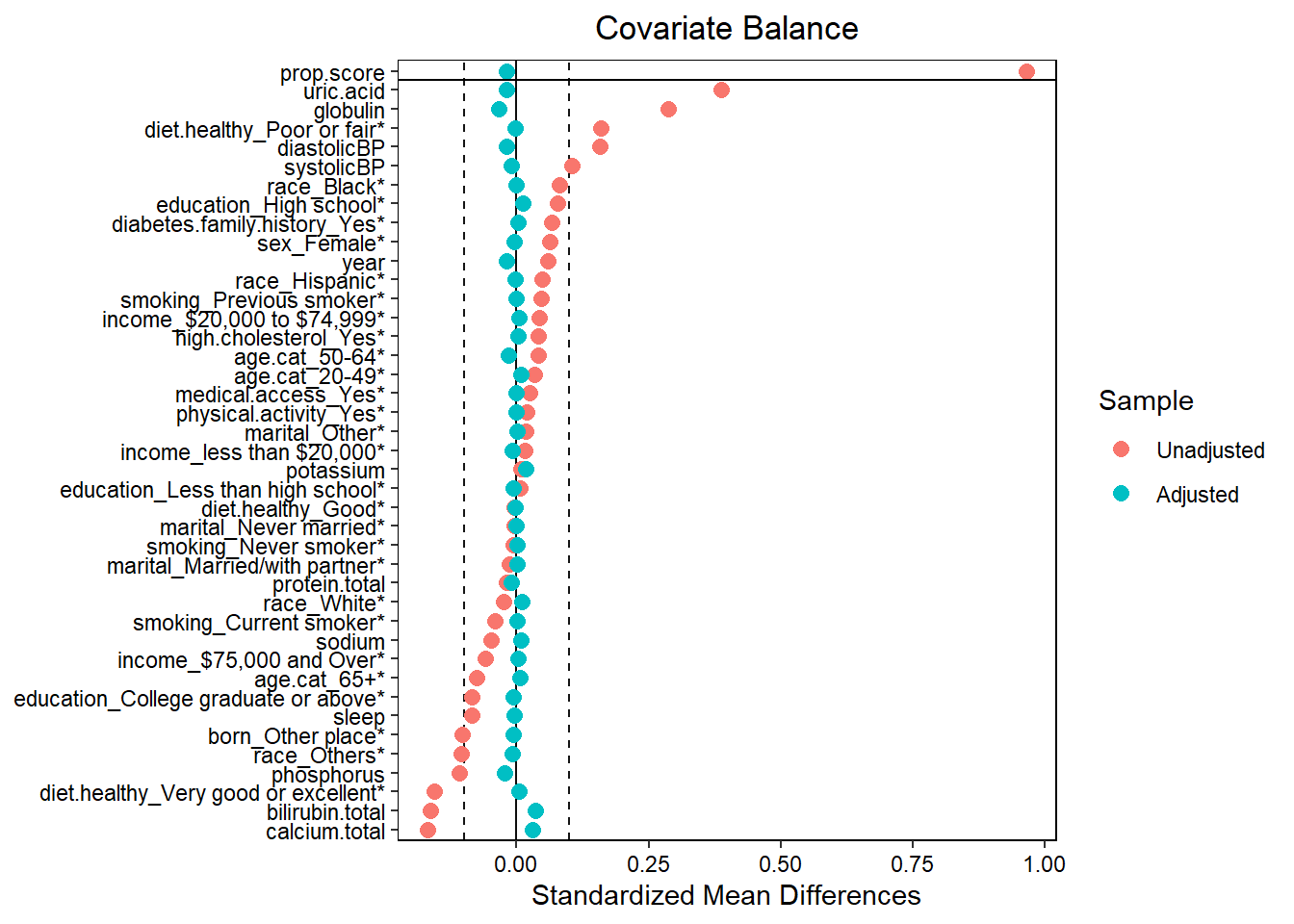- Assess balance against SMD 0.1. Still balanced?