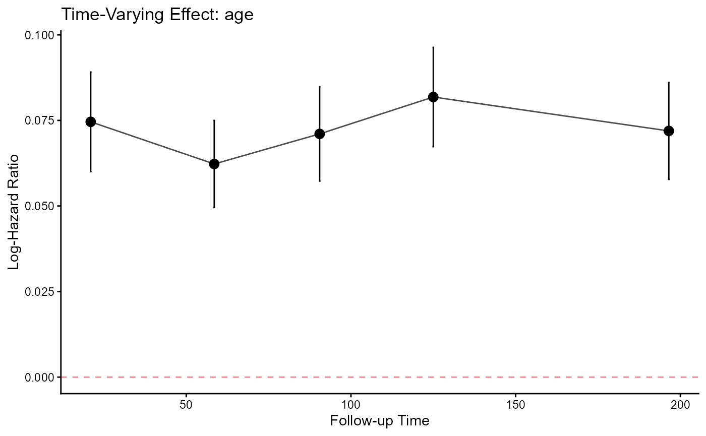 #> [1] "--- Tidy Summary of All Time-Interval Models (if Constant Effect is Violated) ---"